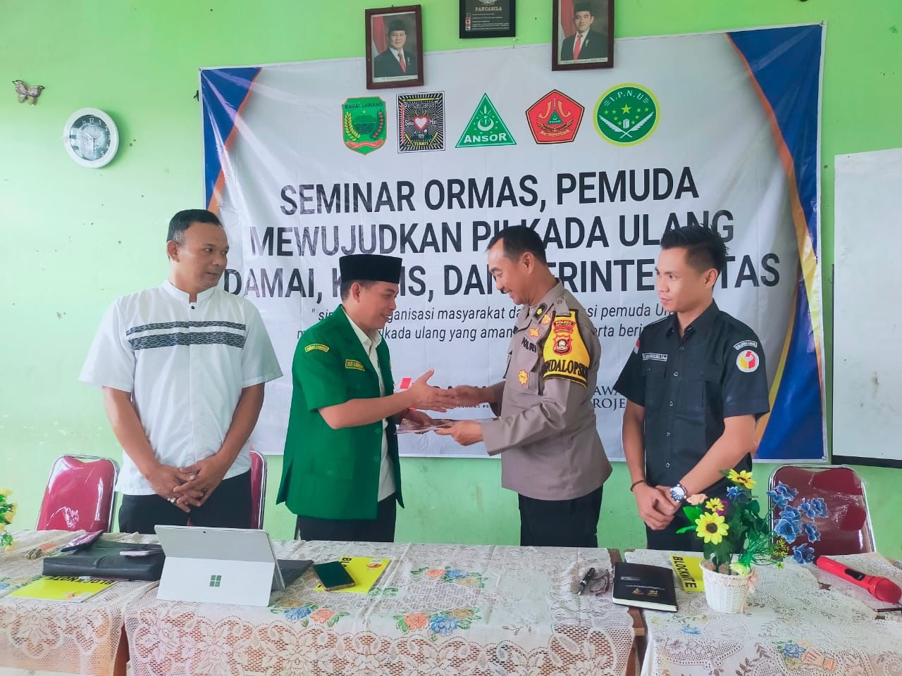 Kegiatan yang bertajuk tema "Seminar organisasi masyarakat (ormas) pemuda mewujudkan Pilkada ulang damai, kritis, dan berintegritas" itu berlangsung di Aula Gedung MTSN 1 Tebing Tinggi.